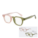 Color-changing frames transition from crystal clear to a vibrant color when the ambient light changes.
