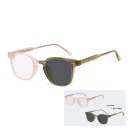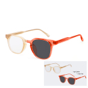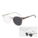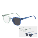 Color-changing frames transition from crystal clear to a vibrant color when the ambient light changes.